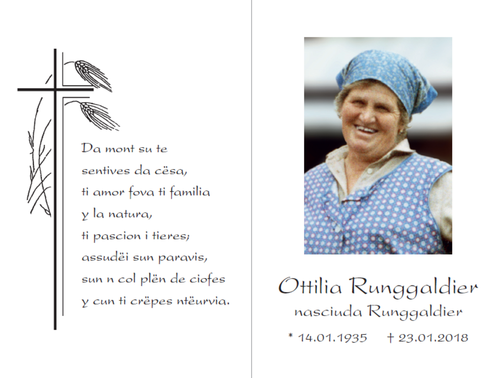 Wir begleiten unsere liebe Ottilia am 25. Januar, um 14.30 Uhr, von der Friedhofskapelle ausgehend zum Abschiedsgottesdienst in die Pfarrkirche von St. Christina.