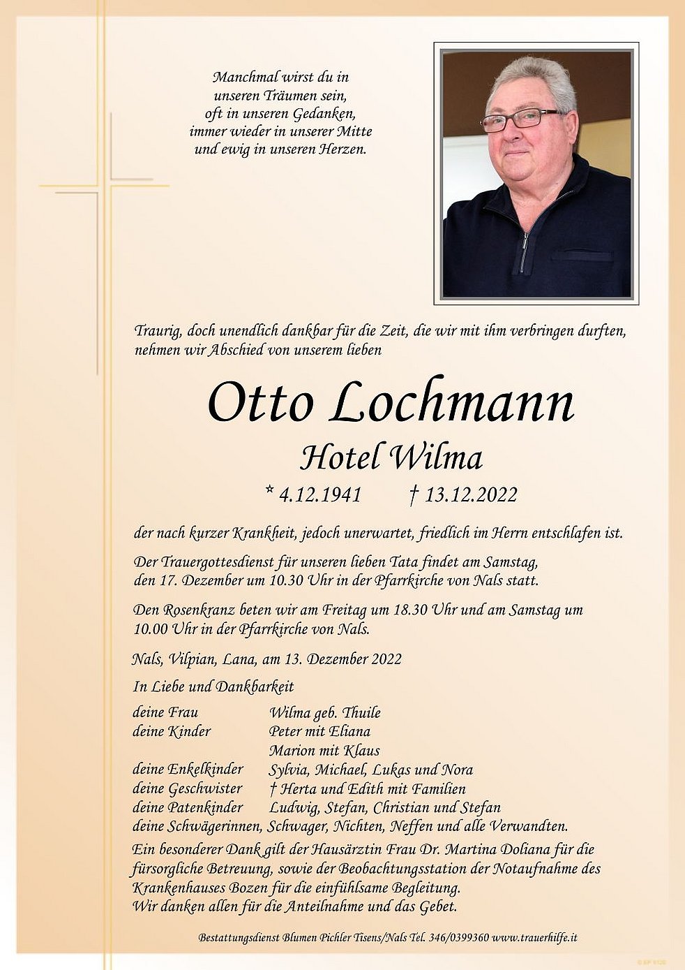Der Trauergottesdienst für unseren lieben Tata findet am Samstag,