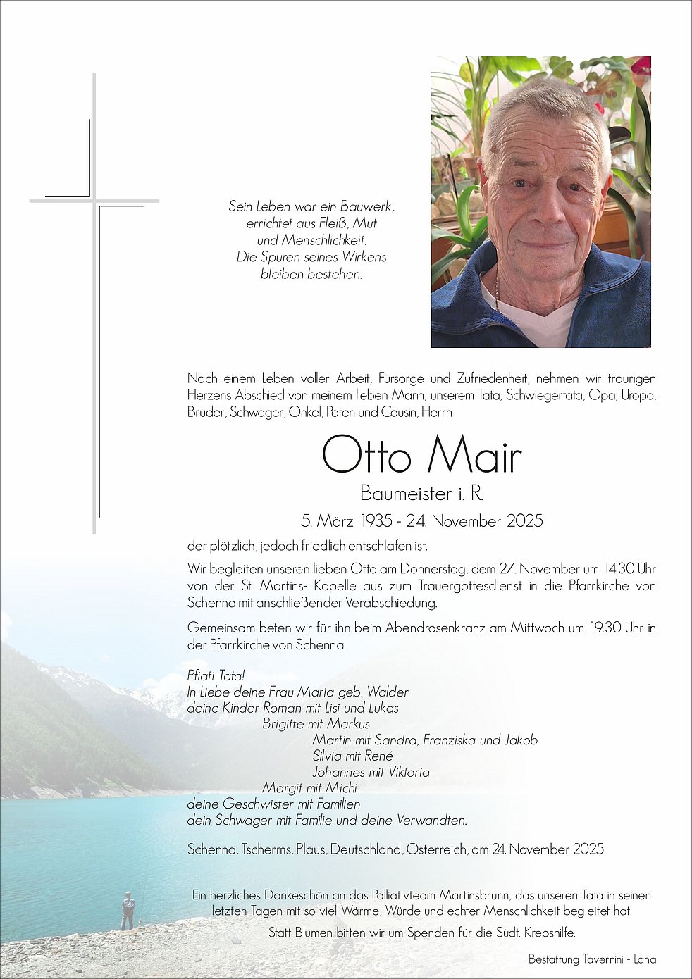 Ruhe in Frieden Otto Herzliches Beileid der Trauerfamile
