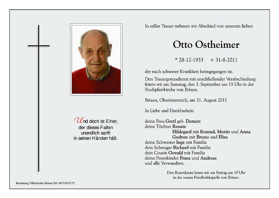 feiern wir am Samstag, den 3. September um 15 Uhr in der Stadtpfarrkirche von Brixen.