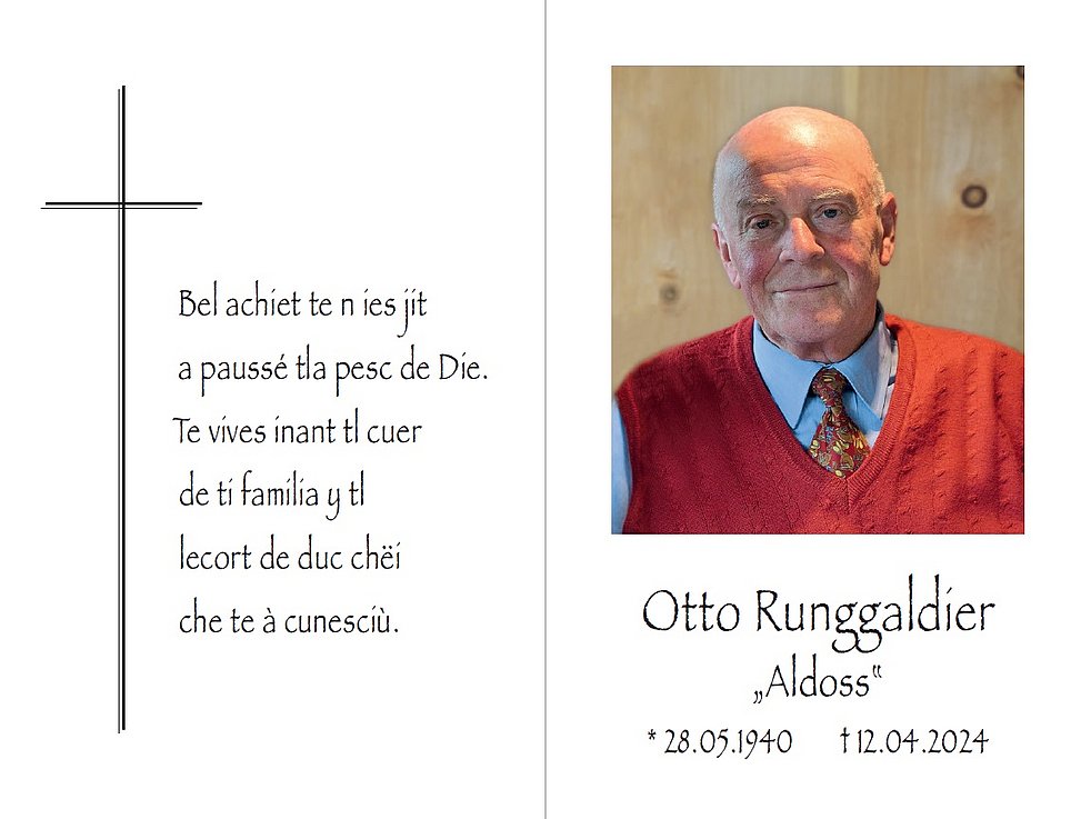 Den Trauergottesdienst mit anschließender Verabschiedung feiern wir am Montag, dem 15. April, um 14.30 Uhr in der Pfarrkirche von Wolkenstein.