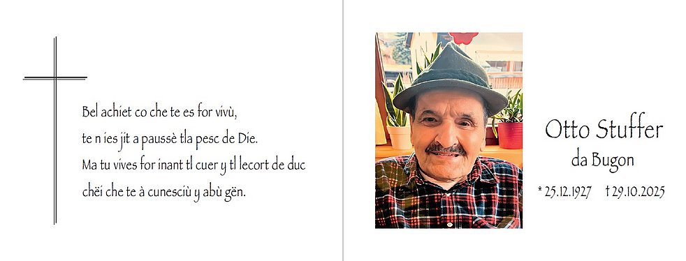 Ein besonderer Dank gilt Dr. Michael Trocker, dem Pflegepersonal des Altersheimes San Durich sowie dem Hauspflegedienst für die liebevolle Betreuung.