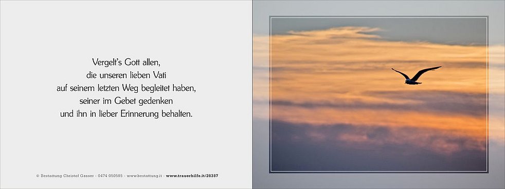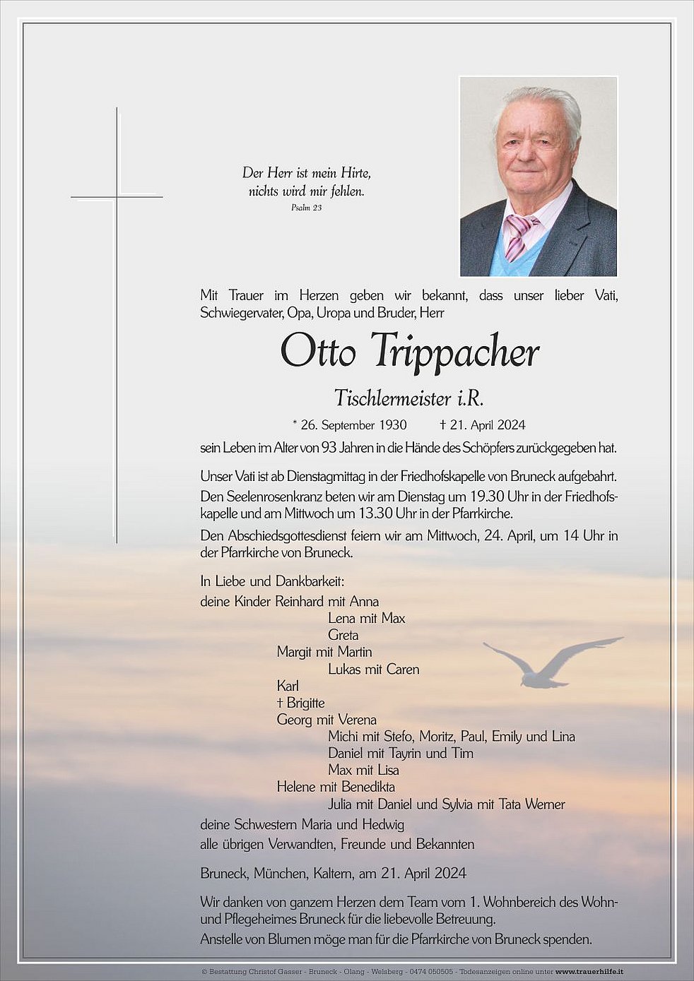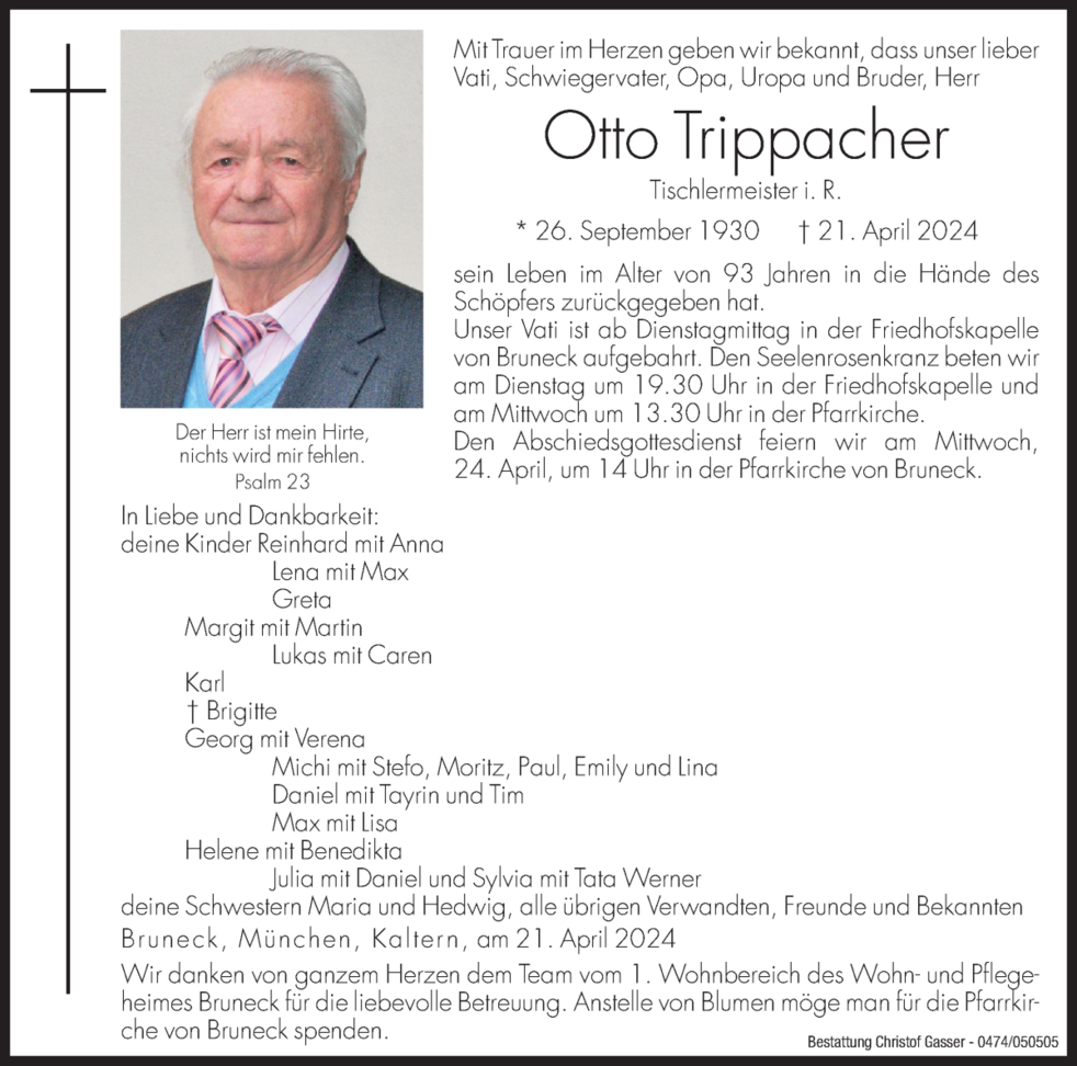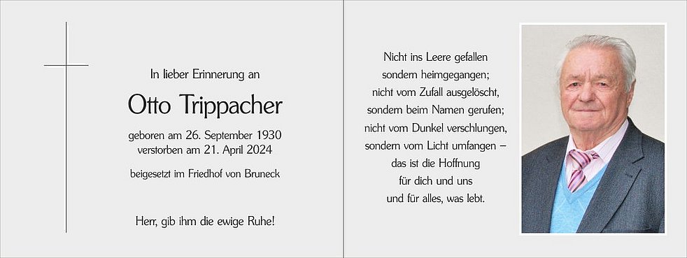 Anstelle von Blumen möge man für die Pfarrkirche von Bruneck spenden.