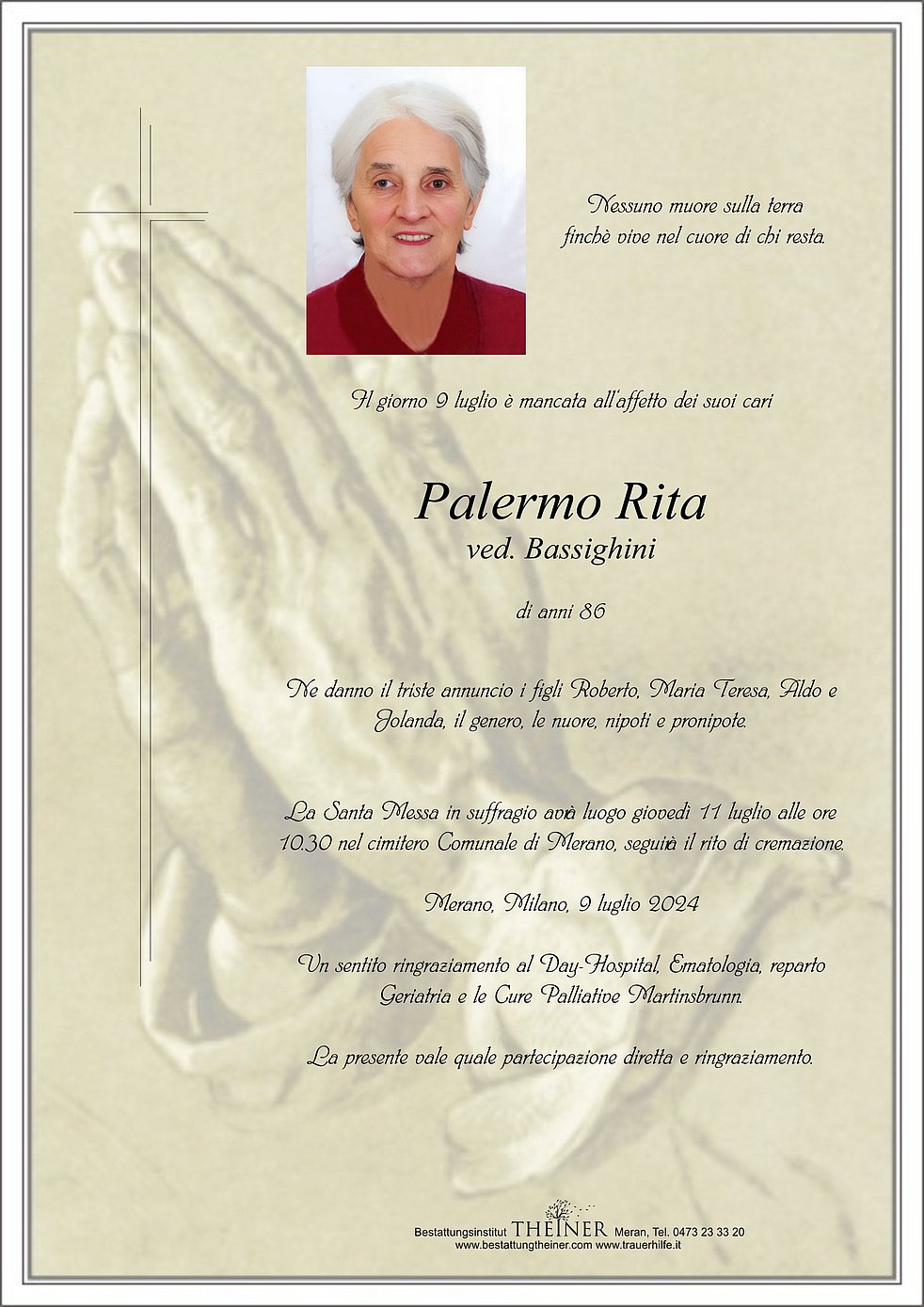 Trauerfeier: 11.07. - 10:30 Uhr Merano