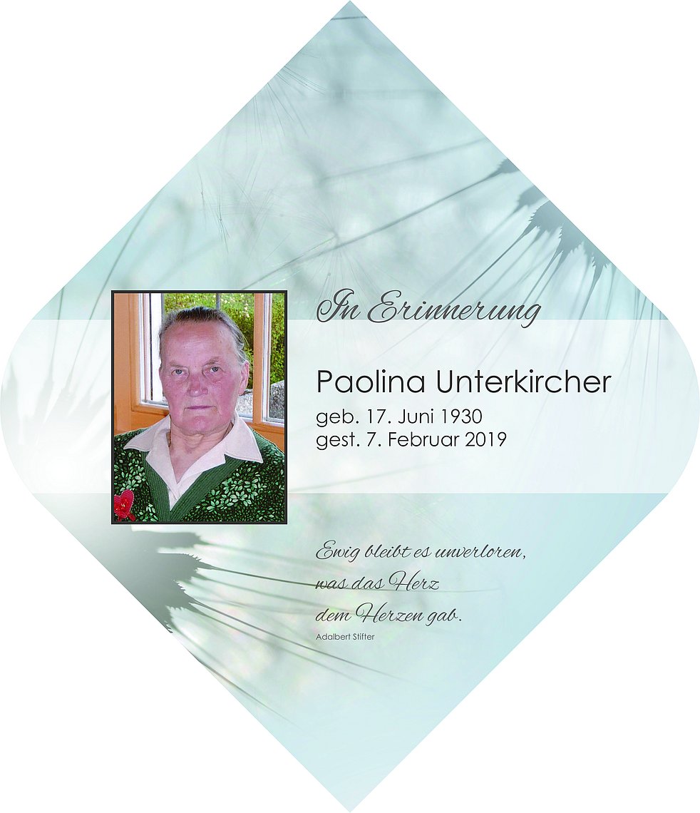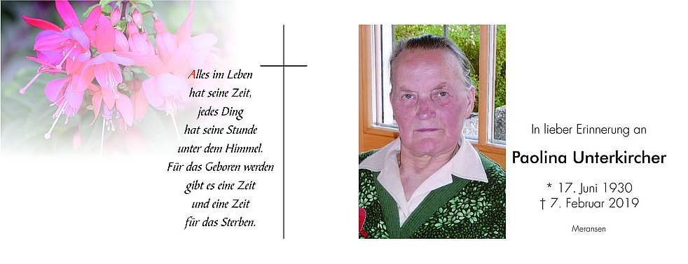 Liebe Paula, Danke fuer deine Liebe und Freundlichkeit mir gegenueber. Der Familie Unterkircher mein Beileid.