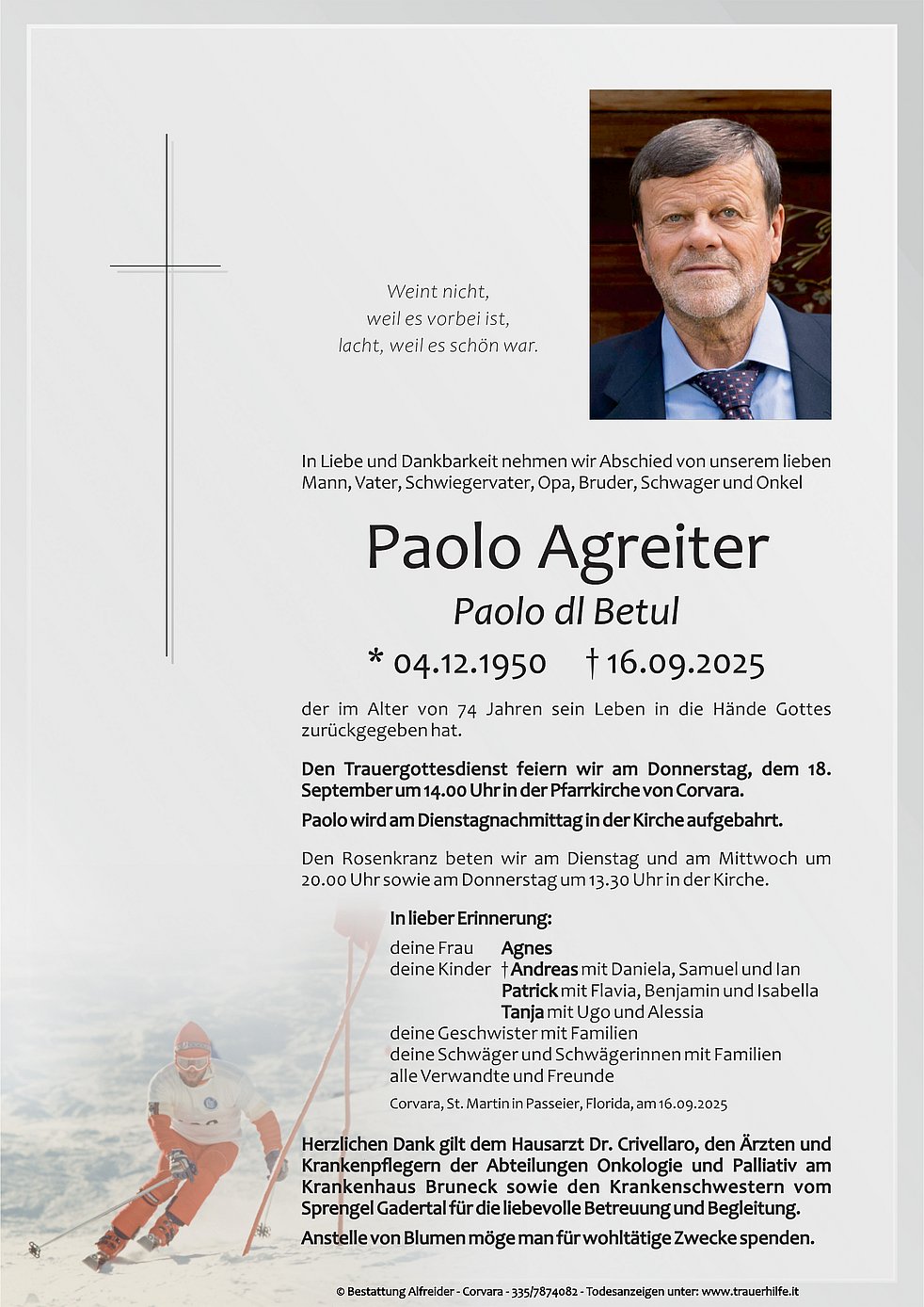 Verabschiedung: 18.09. - 14:00 Uhr Pfarrkirche Corvara