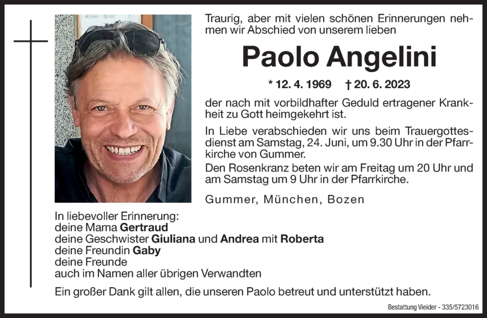 Ein großer Dank gilt allen, die unseren Paolo betreut und unterstützt haben.