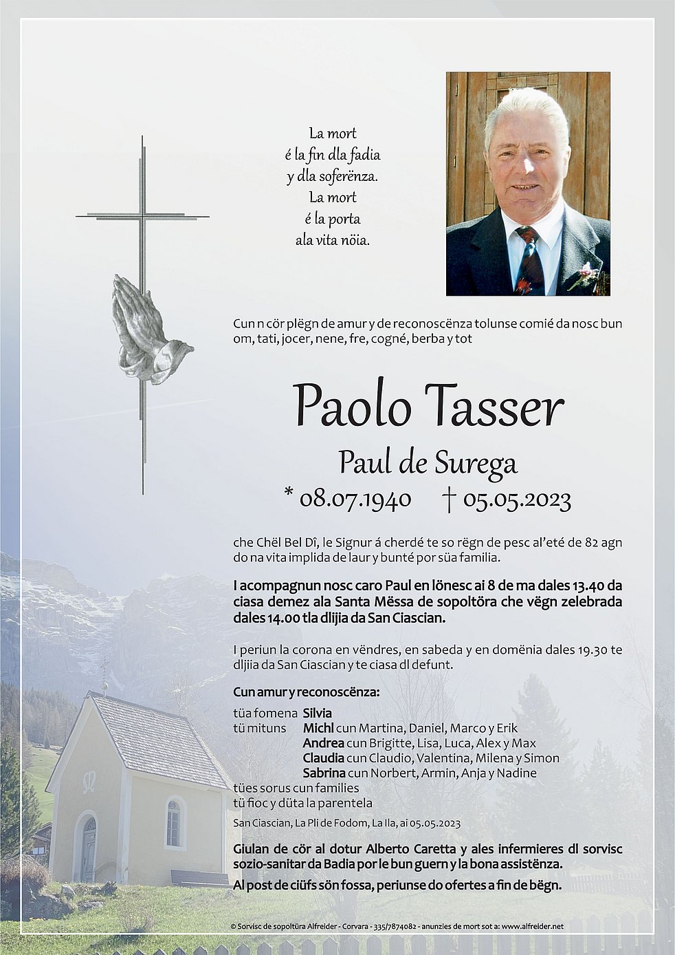 Verabschiedung: 08.05. - 14:00 Uhr Pfarrkirche St.Kassian