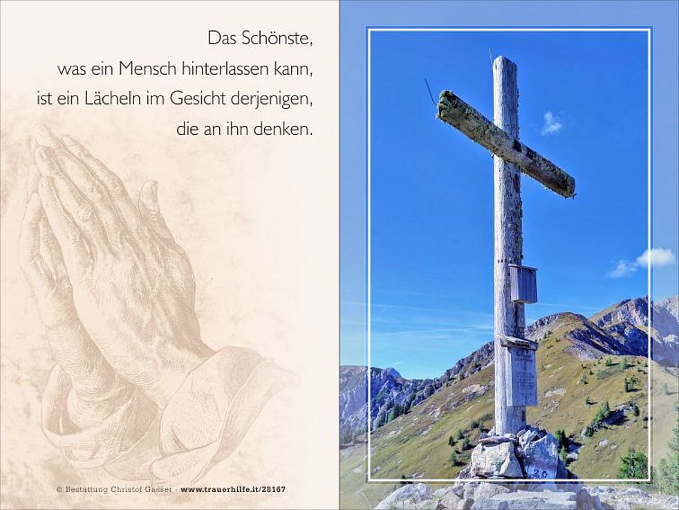 Ein inniger Dank geht an das gesamte Personal des Wohn- und Pflegeheimes Olang und an seinen Hausarzt Herrn Dr. Martin Vieider.