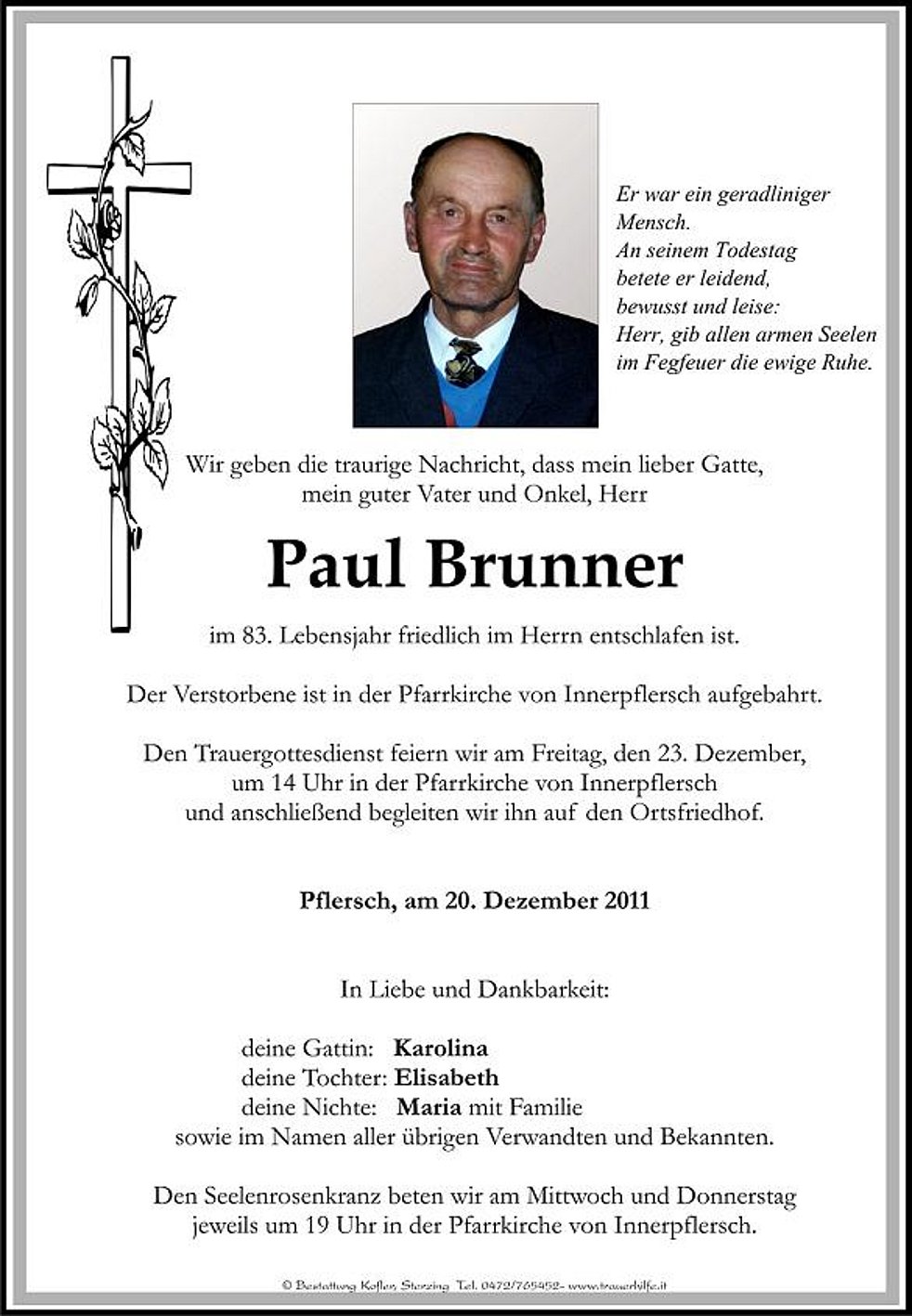 Der Verstorbene ist in der Pfarrkirche von Innerpflersch aufgebahrt.