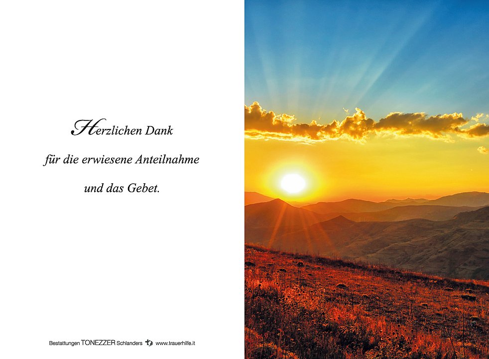 Ein besonderer Dank für die fürsorgliche Pflege gilt dem Sohn Ulrich, den Pflegerinnen Iveta und Anna, sowie den Ärzten und dem Pflegepersonal des Krankenhauses von Schlanders.