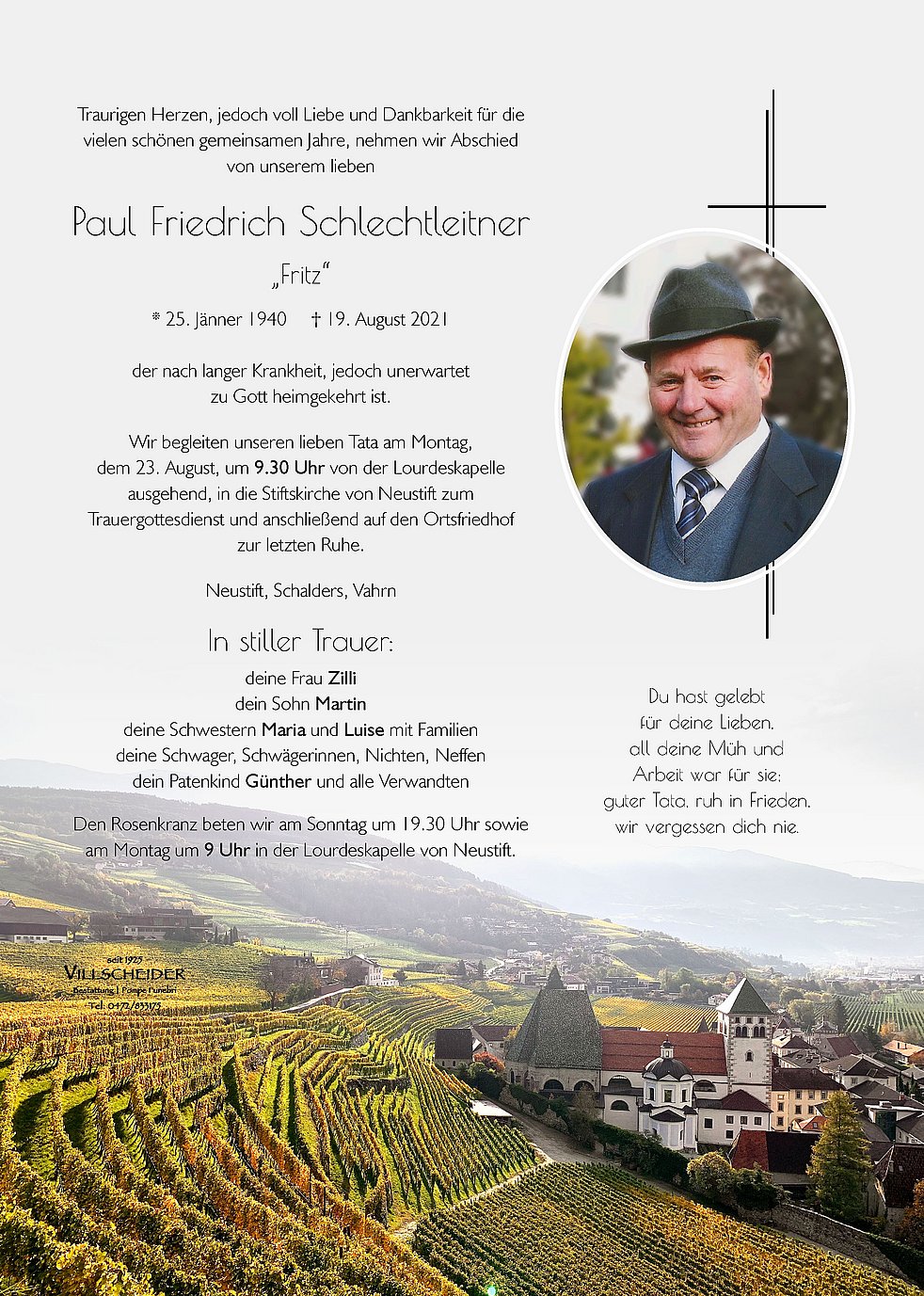 Begräbnisgottesdienst: 23.08. - 09:30 Uhr Neustift
