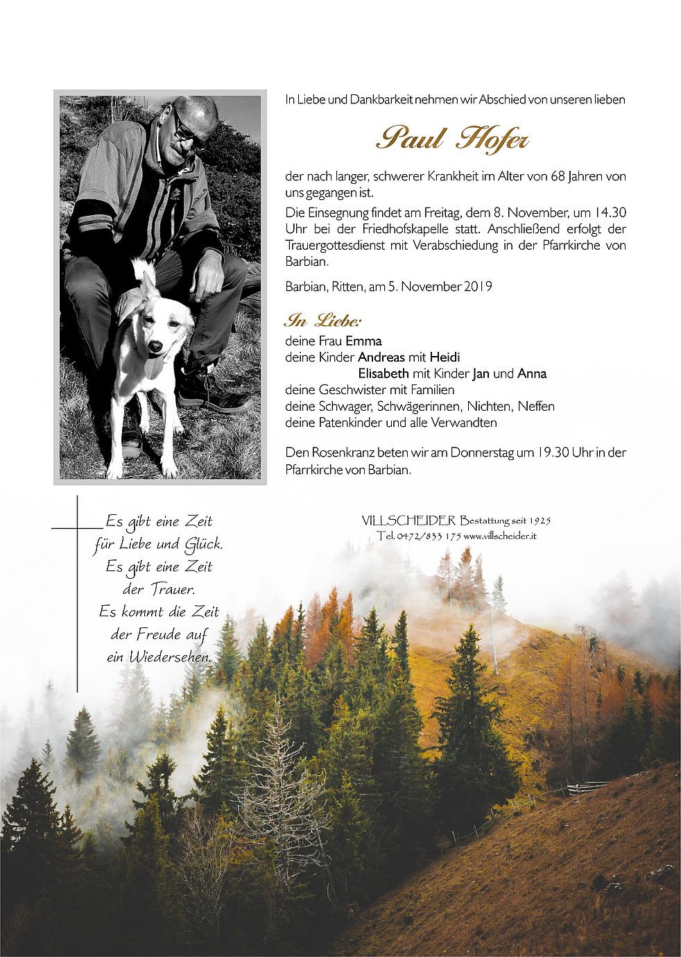 Liebe Emma, mein Beleid zum Tod deines Mannes Paul: Möge die Erinnerung an schöne Stunden mit ihm dir und deinen Angehörigen Trost in dieser Zeit der Trauer bedeuten. Viel Kraft und Zuversicht wünscht dir Sabine