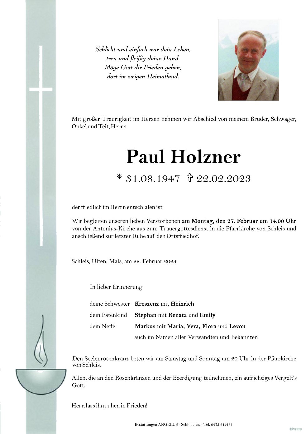 Danke Paul für deine Hilfsbereitschaft in der Nachbarschaft. Du wirst uns fehlen!