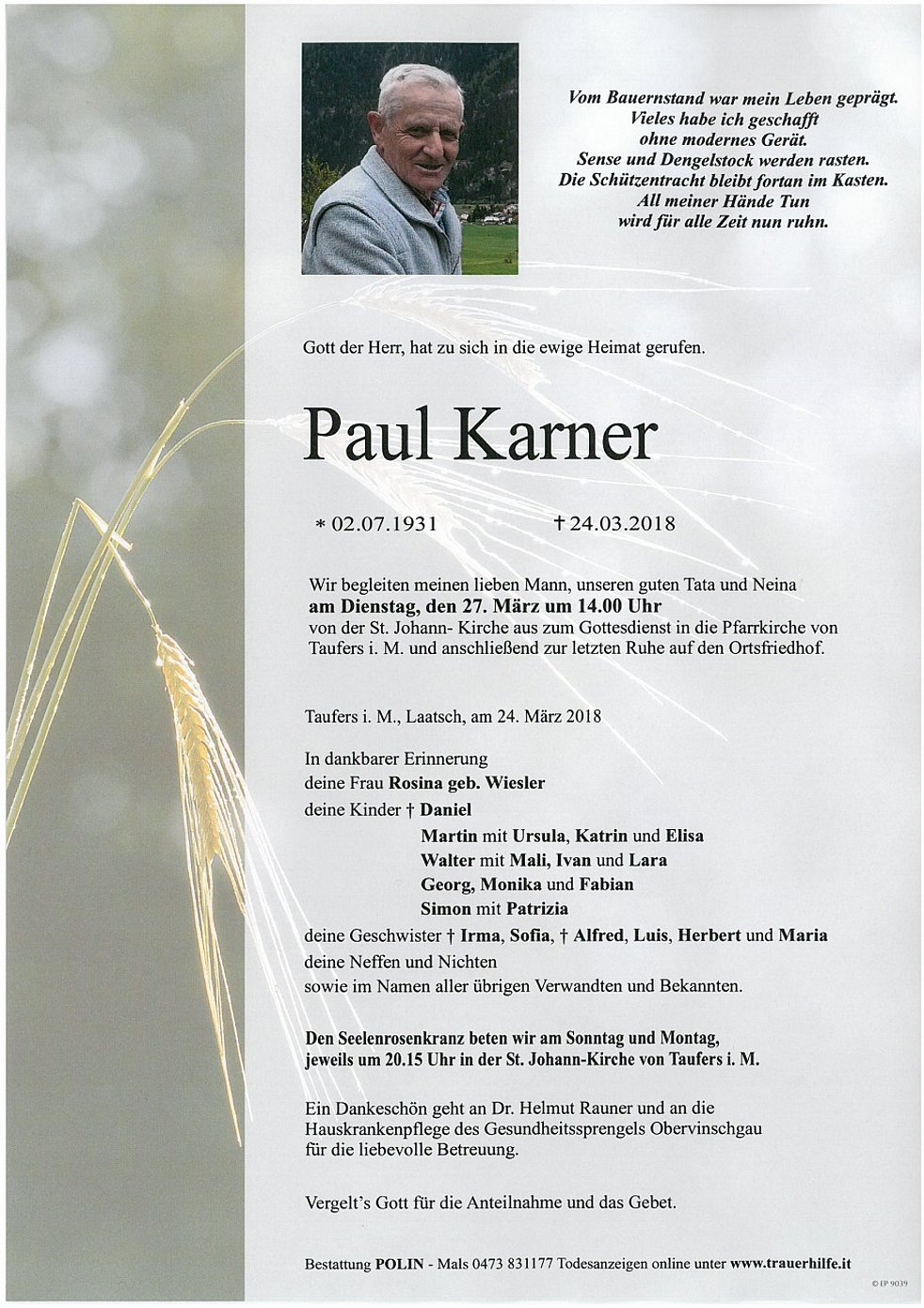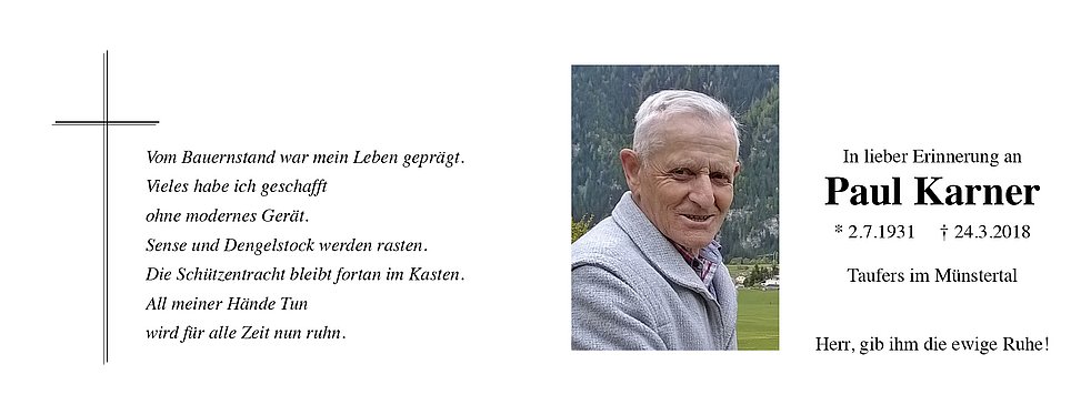 Taufers i. M. und anschließend zur letzten Ruhe auf den Ortsfriedhof.