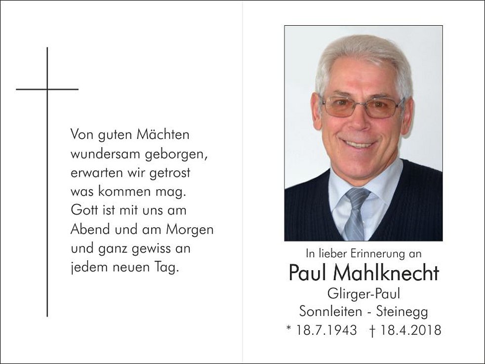 Den Begräbnisgottesdienst feiern wir am Samstag, 21. April, um 14.30 Uhr