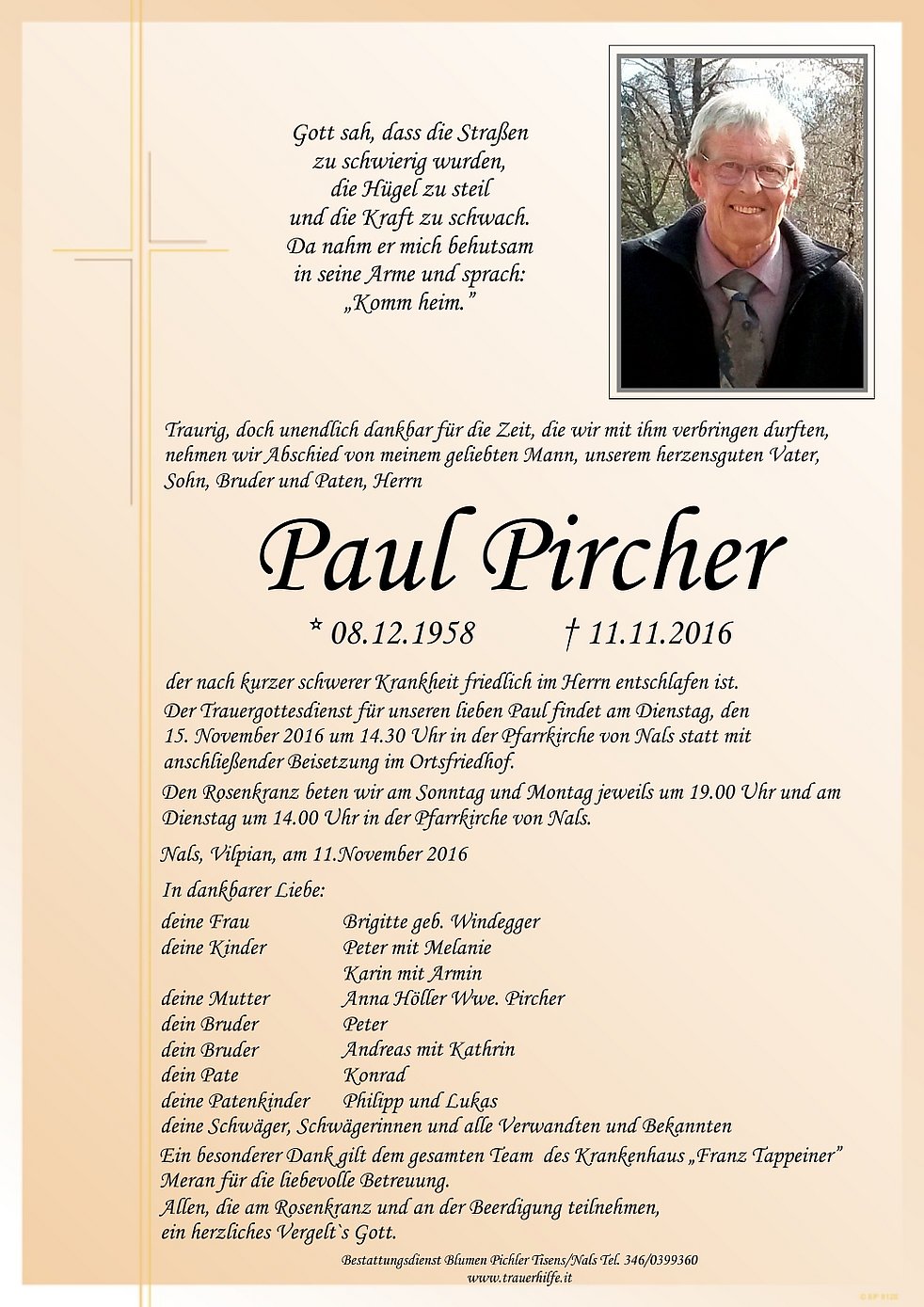 Der Trauergottesdienst für unseren lieben Paul findet am Dienstag, den