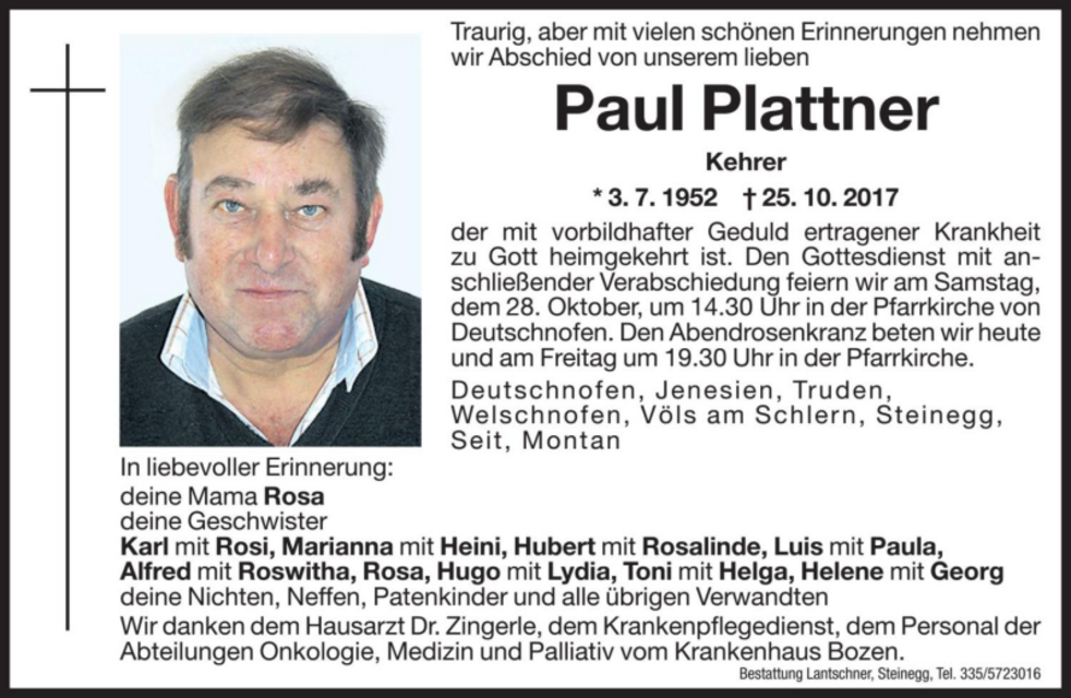 Wir danken dem Hausarzt Dr. Zingerle, dem Krankenpflegedienst, dem Personal