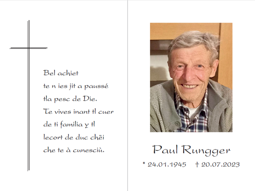 Den Trauergottesdienst feiern wir am Samstag, dem 22. Juli, um 14.30 Uhr in der Pfarrkirche von St. Ulrich. Anschließend begleiten wir ihn in den Ortsfriedhof.