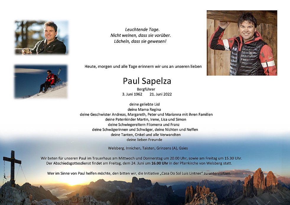 Wir beten für unseren Paul im Trauerhaus am Mittwoch und Donnerstag um 20 Uhr, sowie am Freitag um 15.30 Uhr.