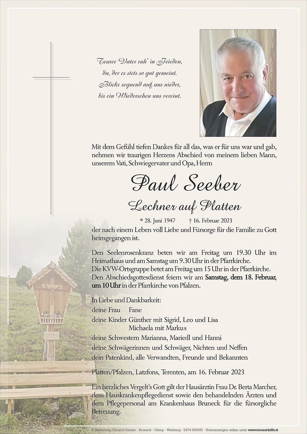Den Abschiedsgottesdienst feiern wir am Samstag, dem 18. Februar, um 10 Uhr in der Pfarrkirche von Pfalzen.