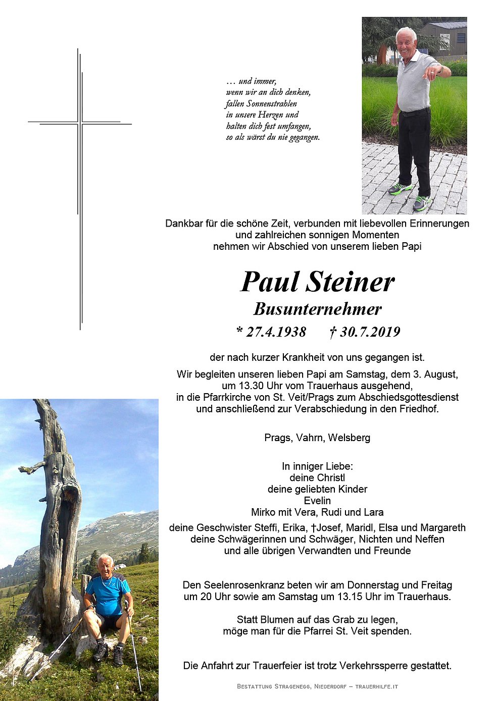 Wir begleiten unseren lieben Papi am Samstag, dem 3. August, um 13.30 Uhr vom Trauerhaus ausgehend, in die Pfarrkirche von St. Veit/Prags zum Abschiedsgottesdienst und anschließend zur Verabschiedung in den Friedhof.