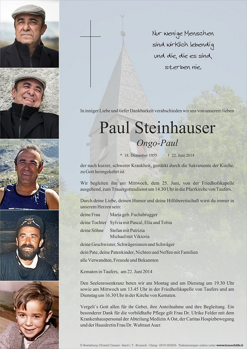 Wir begleiten ihn am Mittwoch, dem 25. Juni, von der Friedhofskapelle ausgehend, zum Trauergottesdienst um 14.30 Uhr in die Pfarrkirche von Taufers.