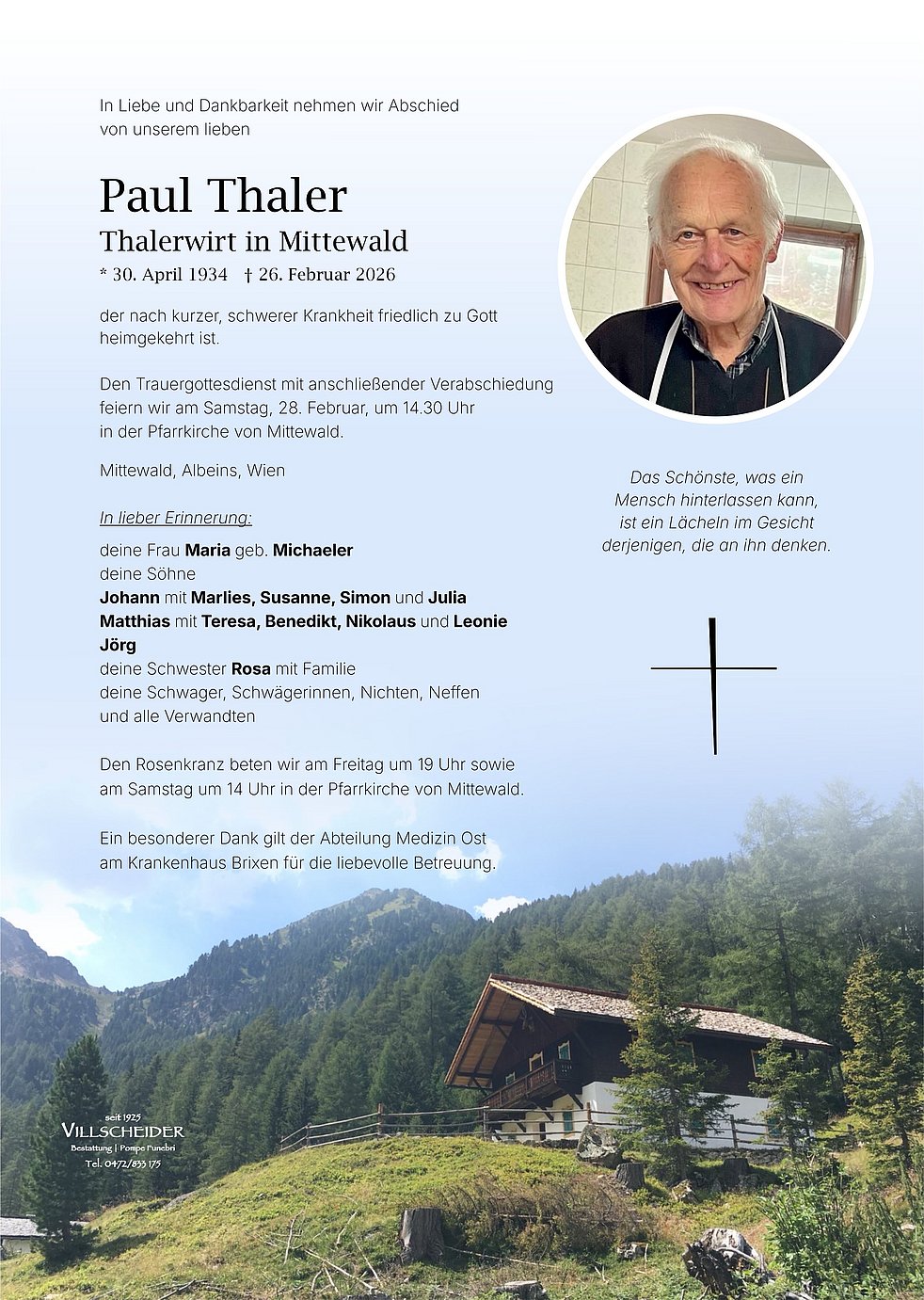 Trauerfeier: 28.02. - 14:30 Uhr Mittewald