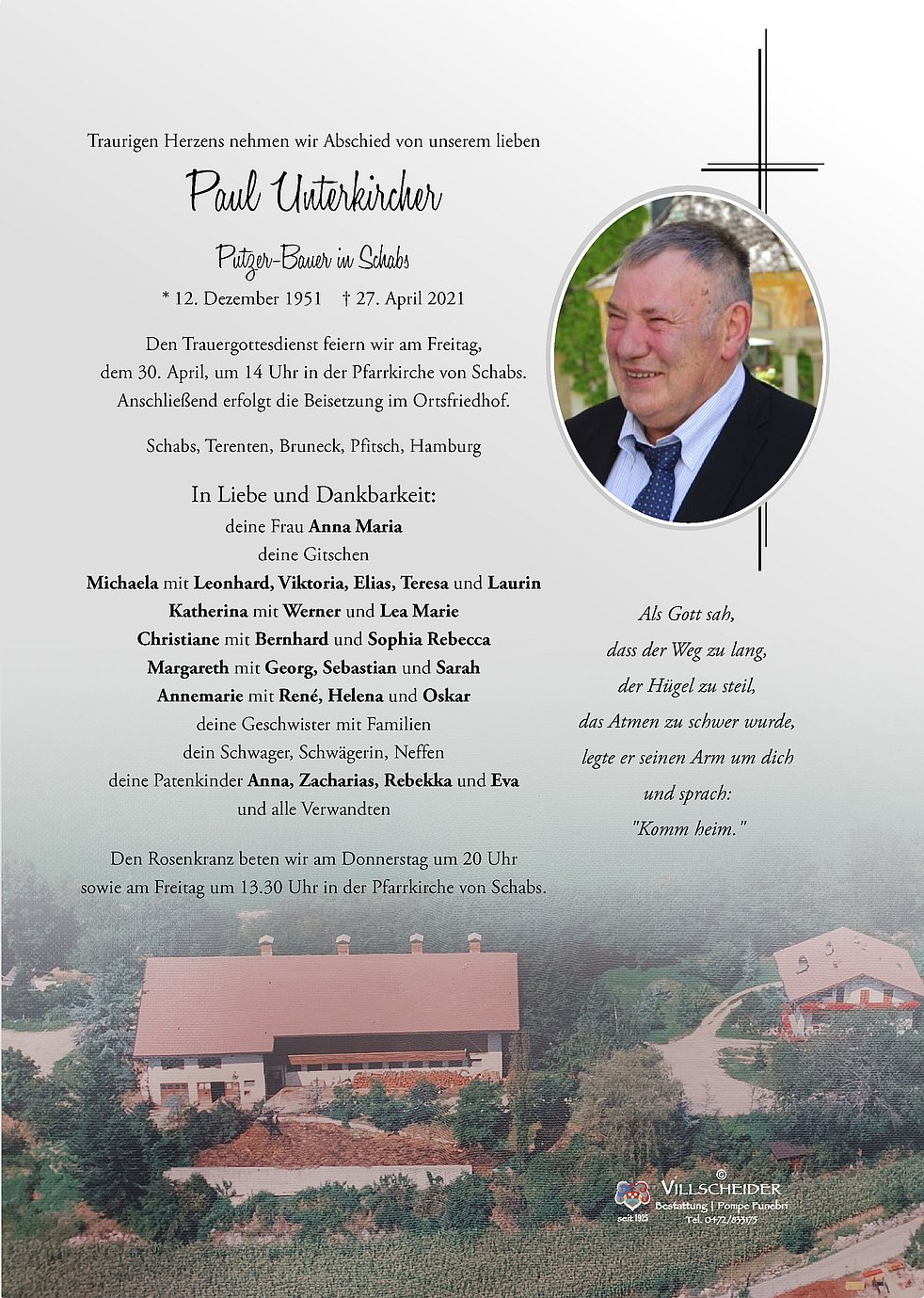 Paul war viele Jahre aktiver Feuerwehrmann und zuletzt Ehrenmitglied der Feuerwehr Schabs.