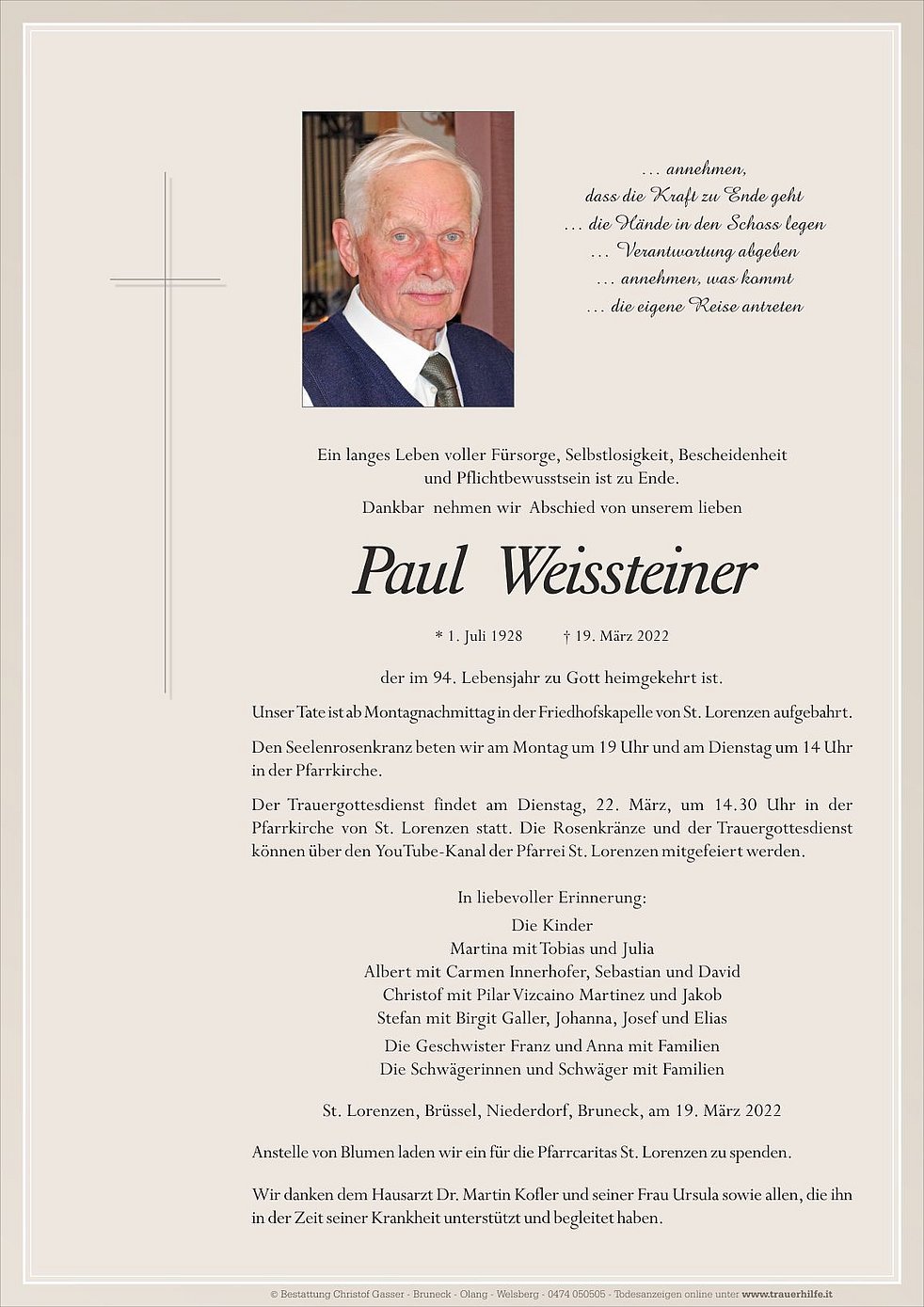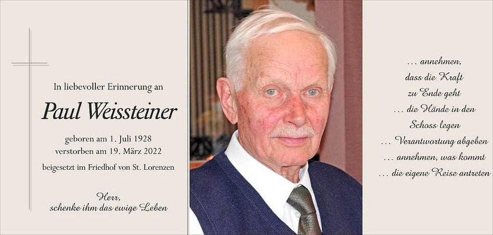 Unser Tate ist ab Montagnachmittag in der Friedhofskapelle von St. Lorenzen aufgebahrt.