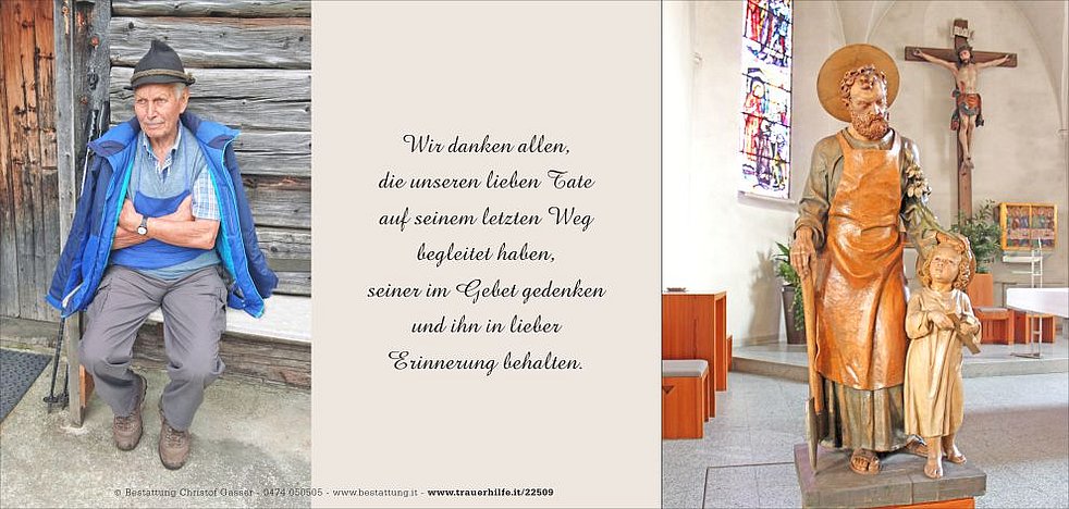 Wir danken dem Hausarzt Dr. Martin Kofler und seiner Frau Ursula sowie allen, die ihn in der Zeit seiner Krankheit unterstützt und begleitet haben.