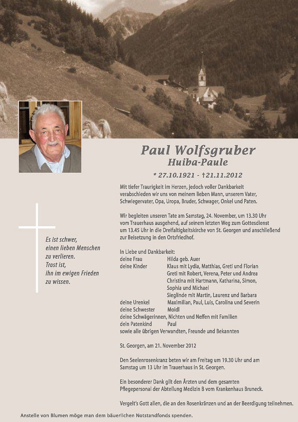 Anstelle von Blumen möge man dem bäuerlichen Notstandfonds spenden.