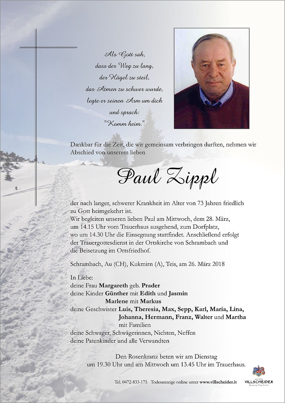 Wir begleiten unseren lieben Paul am Mittwoch, dem 28. März,