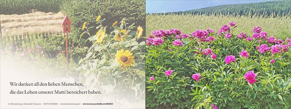 Wir danken all den lieben Menschen, die das Leben unserer Mutti bereichert haben.