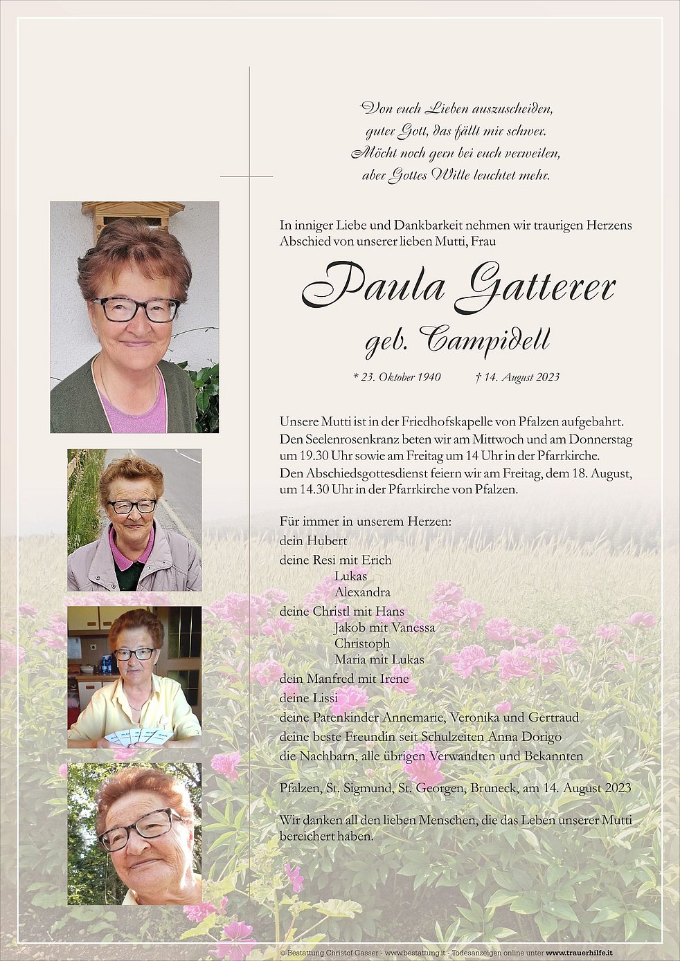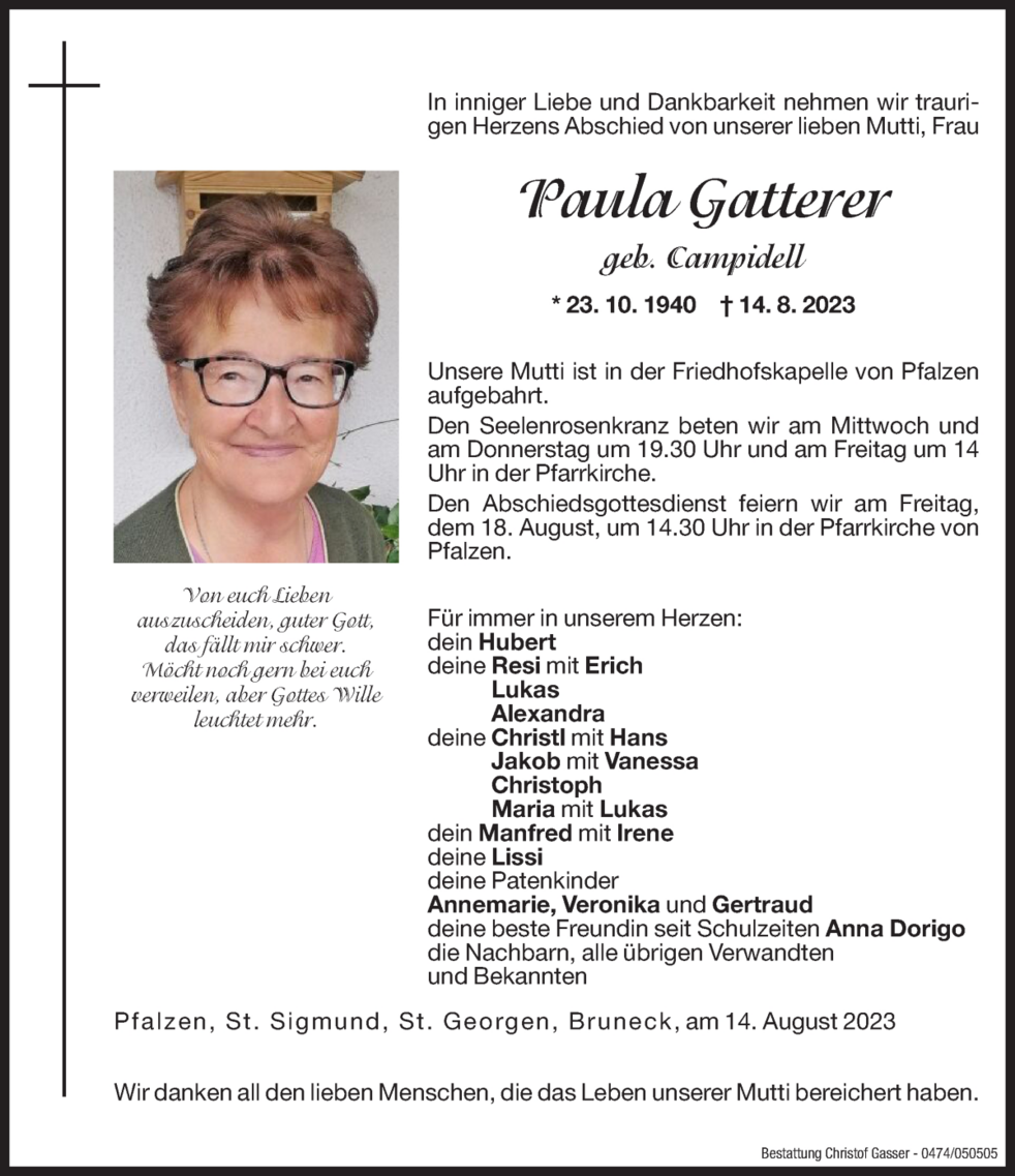 Unsere Mutti ist in der Friedhofskapelle von Pfalzen aufgebahrt.