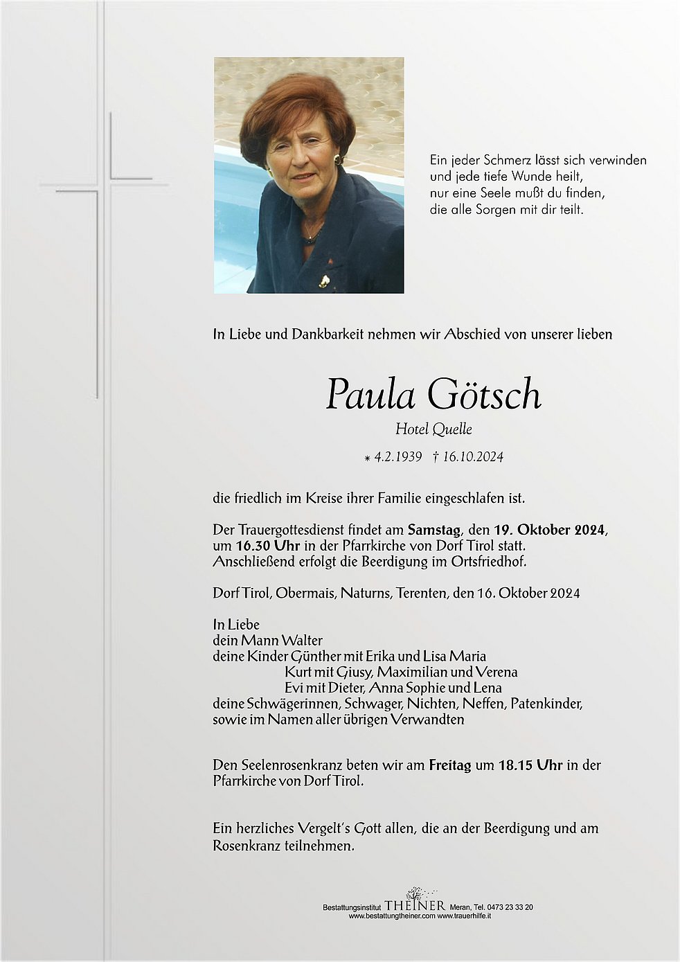 Der Trauergottesdienst findet am Samstag, den 19. Oktober 2024, um 16.30 Uhr in der Pfarrkirche von Dorf Tirol statt.