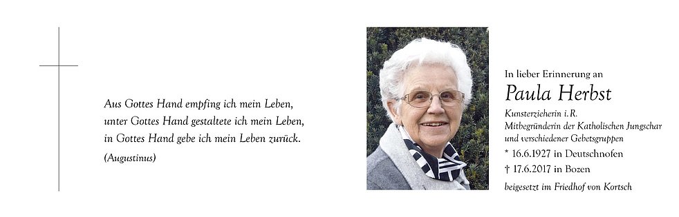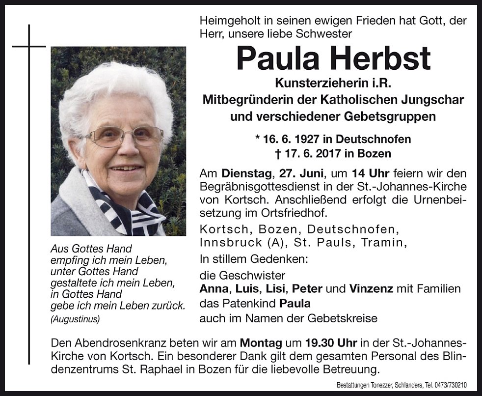 Am Dienstag, 27. Juni, um 14 Uhr feiern wir den Begräbnisgottesdienst in der St.-Johannes-Kirche von Kortsch. Anschließend erfolgt die Urnenbeisetzung im Ortsfriedhof.