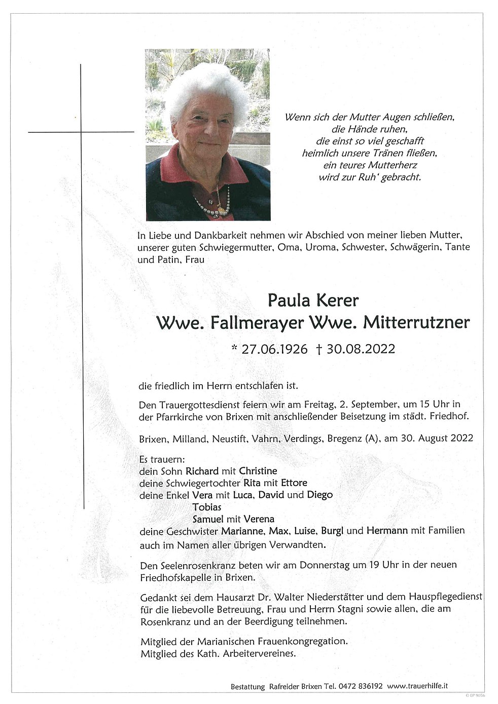 Paula Kerer Wwe. Fallmerayer Wwe. Mitterrutzner