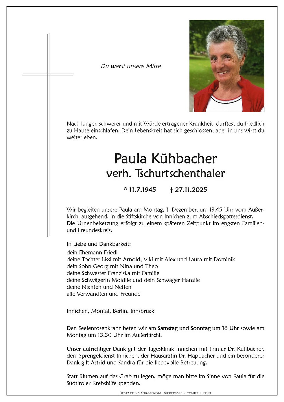 Liebe Paula du wars für mich als Kind meine " Oma Paula" ,deine Herzlichkeit, Frohsinn und dein bescheidenes Lächeln trage ich tief in meinem Herzen, ich werde dich nie vergessen.