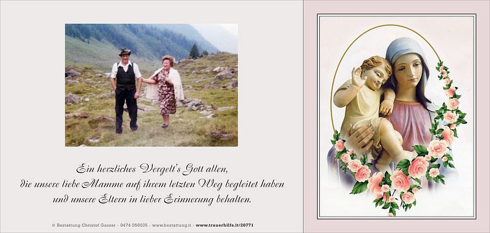 Ein herzliches Vergelt’s Gott gilt dem Hausarzt Herrn Dr. Stefan Oberheinricher für seinen unermüdlichen Einsatz und seine Hilfsbereitschaft, den Ärzten und dem Pflegepersonal der Abteilungen Chirurgie und Medizin am Krankenhaus Bruneck sowie den Sprengelschwestern.