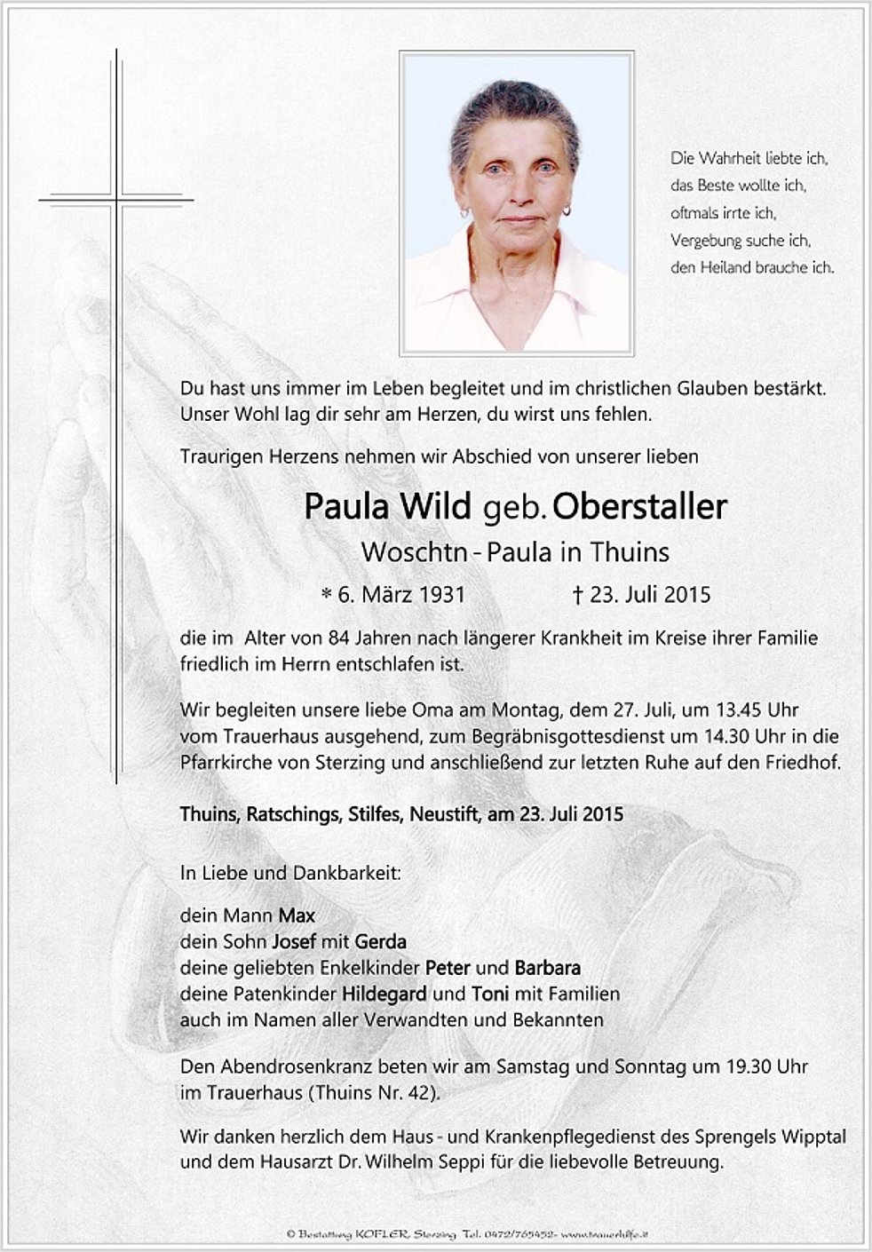 in die Pfarrkirche von Sterzing und anschließend zur letzten Ruhe auf den Friedhof.