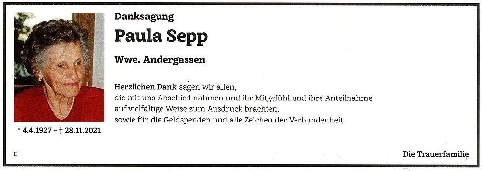 Dankbar für die lange Zeit, die wir gemeinsam erleben durften, nehmen wir Abschied von unserer lieben Mutter, Schwiegermutter, Oma, Schwester, Schwägerin und Tante, Frau