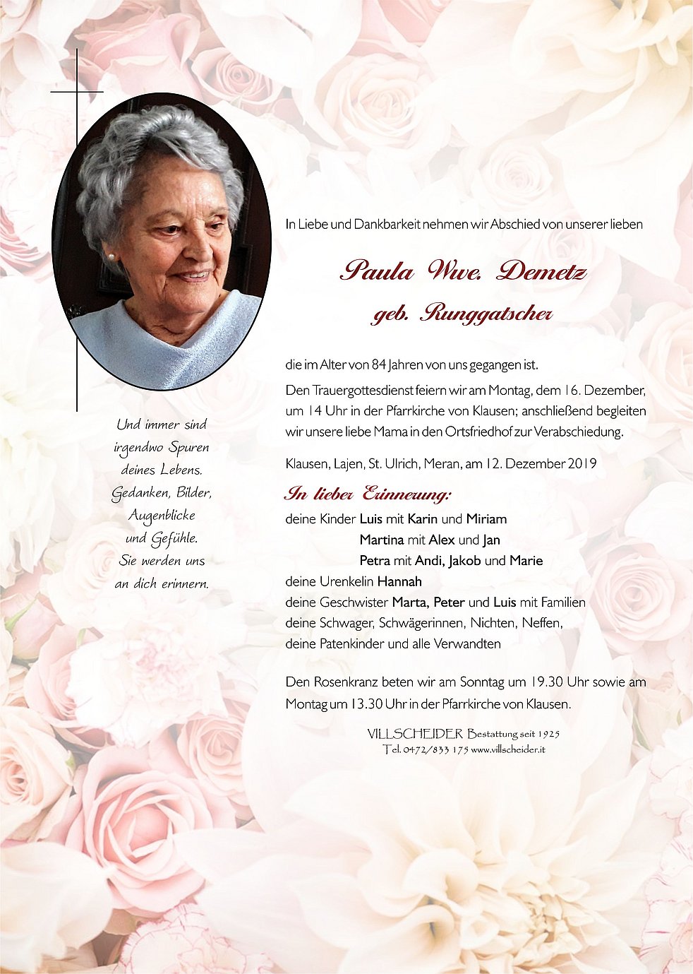 Trauerfeier: 16.12. - 14:00 Uhr Klausen