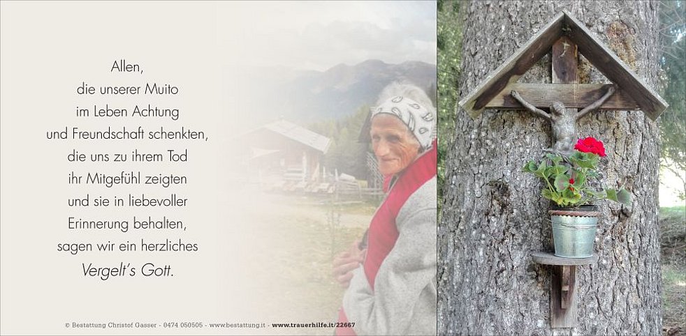 Mit dem Gefühl tiefen Dankes für all das, was sie für uns war und gab, nehmen wir traurigen Herzens Abschied von unserer lieben Muito, Schwiegermutter, Oma und Uroma, Frau