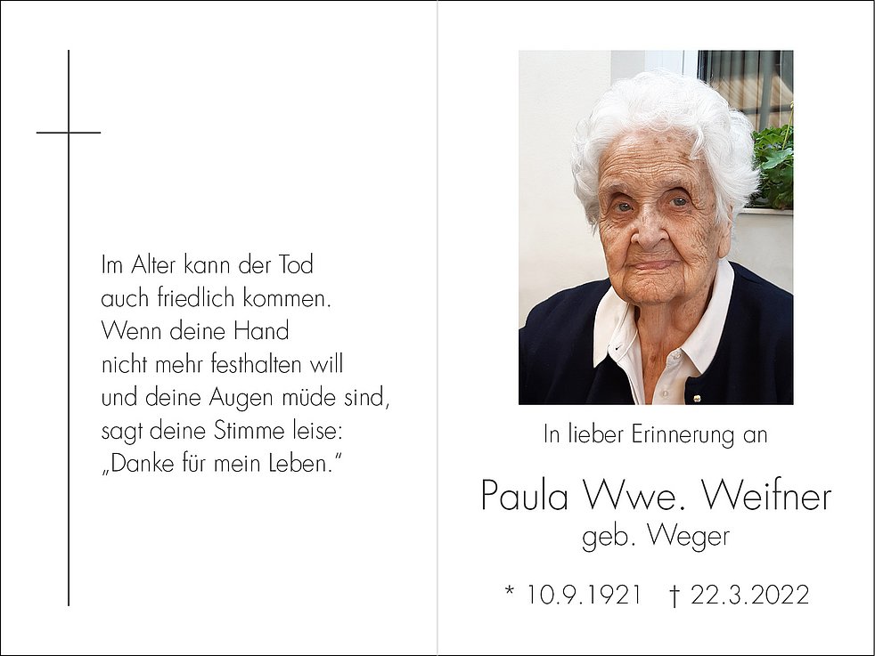 Dankbar für die lange Zeit, die wir gemeinsam erleben durften, nehmen wir traurigen Herzens Abschied von unserer lieben Mama, Schwiegermutter, Oma, Tante und Patin