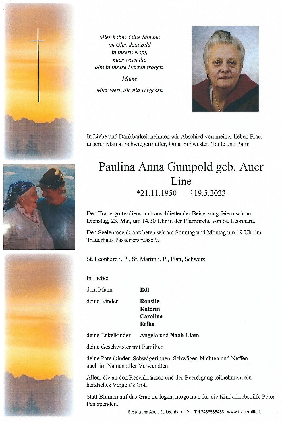 Den Trauergottesdienst mit anschließender Beisetzung feiern wir am Dienstag, 23. Mai, um 14.30 Uhr in der Pfarrkirche von St. Leonhard.