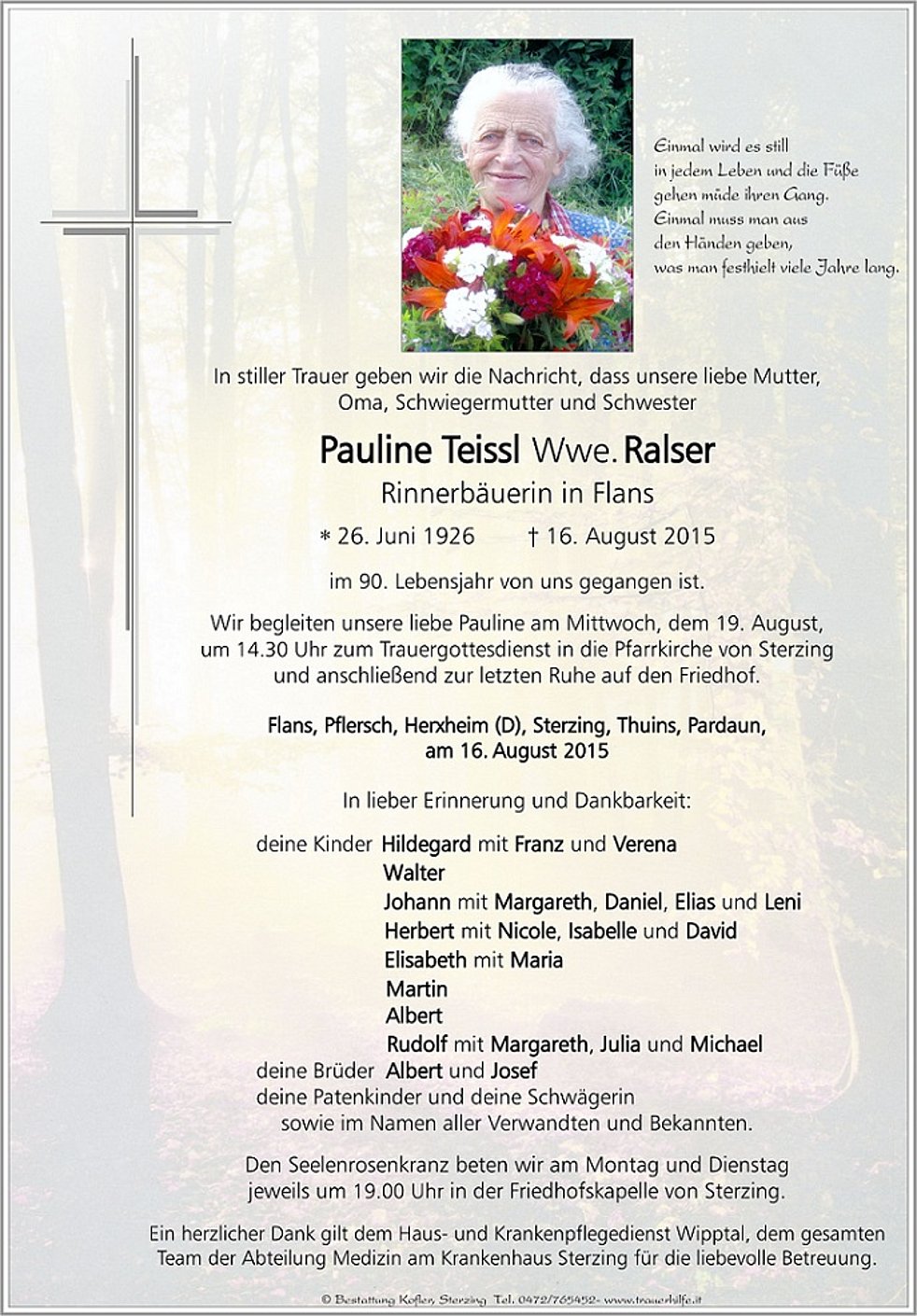 um 14.30 Uhr zum Trauergottesdienst in die Pfarrkirche von Sterzing