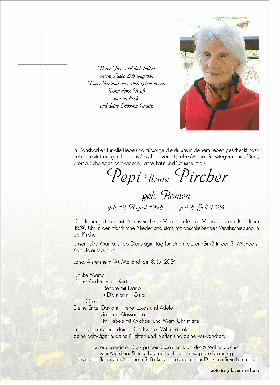 herzliches Beileid an die Trauerfamilie vom gesamten Team des Altenheims St. Pankraz