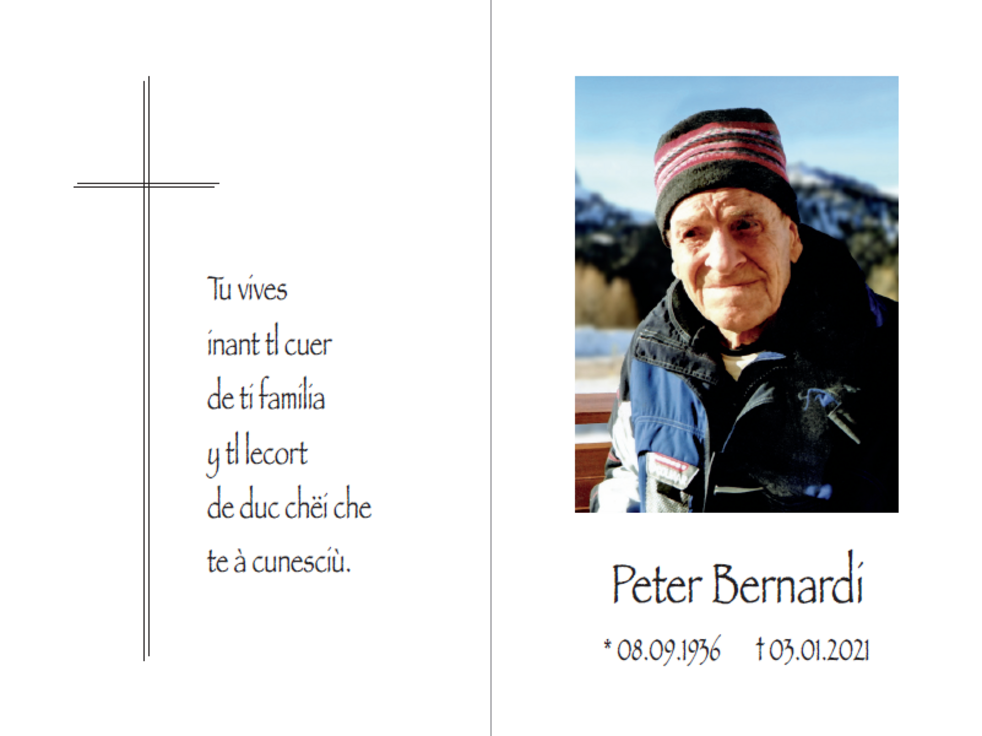 Den Trauergottesdienst feiern wir am Dienstag, dem 05. Januar, um 14.30 Uhr in der Pfarrkirche von St. Ulrich.