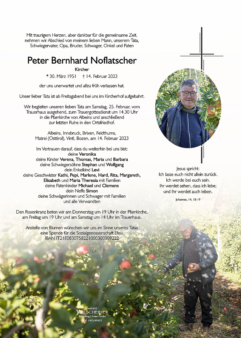Liebe Familie Noflatscher, mein Aufrichtiges Beileid und viel Kraft in dieser schweren Zeit